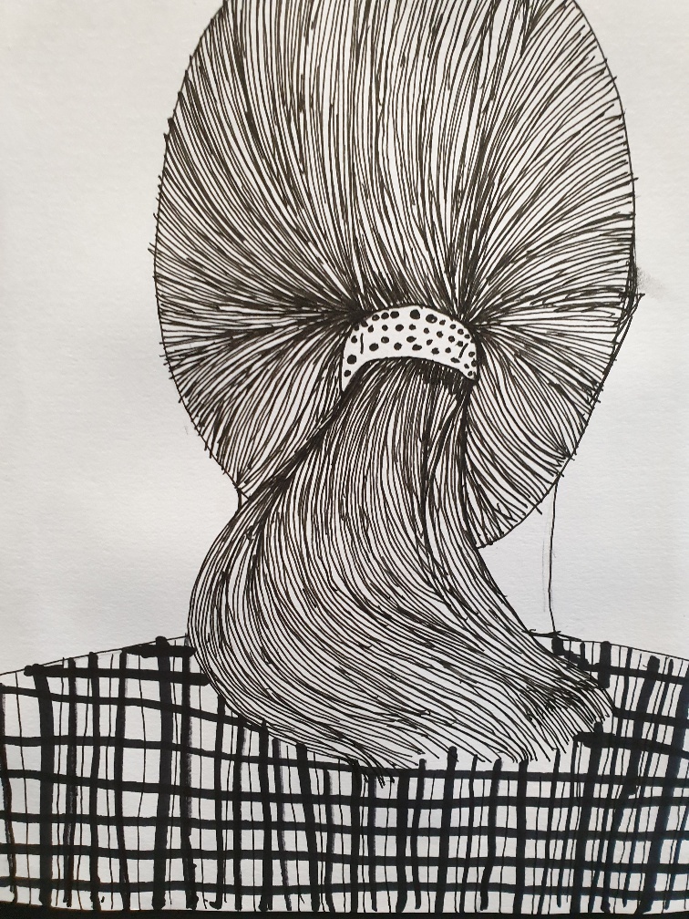 Students undertook line studies of the backs of their heads to create the pictures shown for the blog. Enjoy the amazing creations!